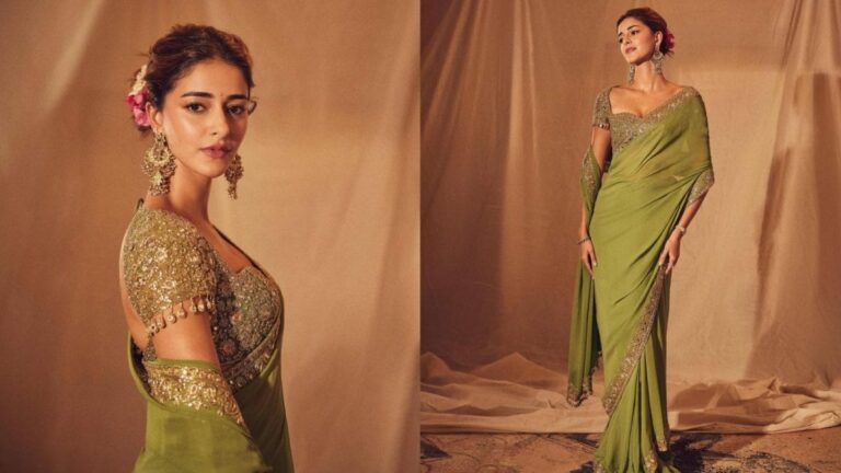 Last Updated:August 29, 2025, 01:13 IST Ganesh Chaturthi 2025: Ananya Panday drapes a warm olive classic saree set designed by…