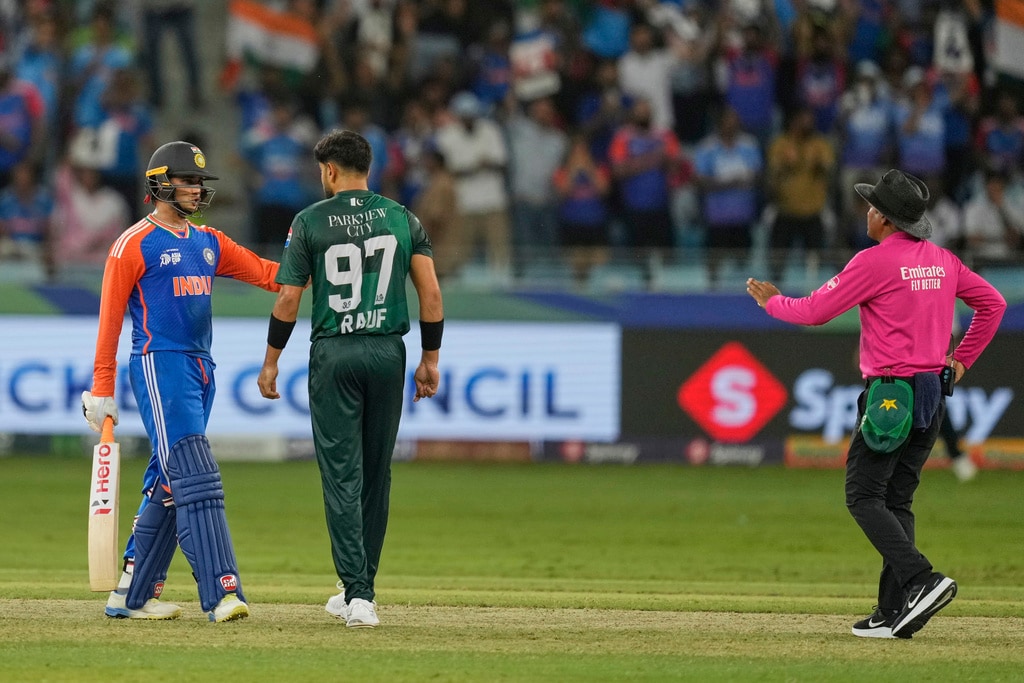 The India-Pakistan Super Fours clash in Dubai on Sunday was marked by intense moments both before and during the match. As India chased 172, the excitement began right from the first ball when Abhishek Sharma’s top edge sailed over the ropes for six. As he walked over to meet Shubman Gill, a few sharp words were exchanged, instantly raising the stakes of the contest. Gill soon targeted Shaheen Afridi, smashing him through extra-cover and then pointing to the spot, which added to the tension. Although Shaheen chose not to react, the rivalry escalated when Gill nailed a short-arm jab for four in the fifth over. At the end of the over, Abhishek and Haris Rauf engaged in a fierce verbal exchange, prompting umpire Gazi Sohel to step in and restore order. The intensity was evident even before play began, as India captain Suryakumar Yadav and Pakistan skipper Salman Ali Agha once again avoided the traditional handshake at the toss. After the match concluded, the players still did not shake hands.