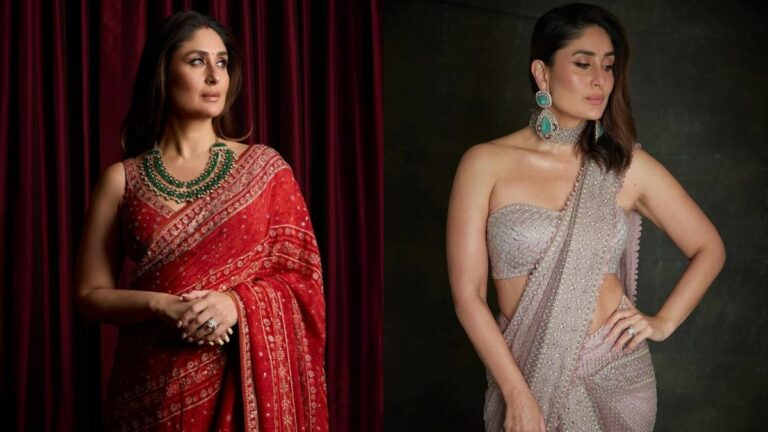 V-neckline Blouse: Take inspiration from Kareena Kapoor and pair you red saree with a matching sleeveless blouse featuring a V-neckline….