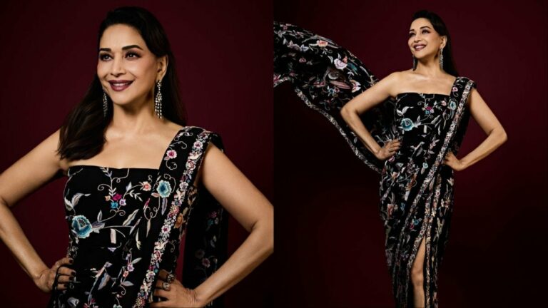 Last Updated:September 21, 2025, 16:00 IST Madhuri Dixit wore a gown inspired by a saree. The gown features exquisite embroidery,…