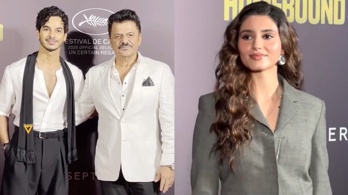 Ishaan Khatter shared a heartfelt moment with father Rajesh at the Homebound premiere, while girlfriend Chandni Bainz stunned in a solo appearance.