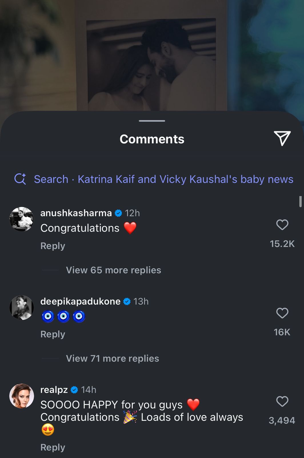 Anushka Sharma wrote, “Congratulations.” She added a red heart emoji. Preity Zinta wrote, “SOOOO HAPPY for you guys. Congratulations. Loads of love always.” However, it was Deepika Padukone’s comment that grabbed the most eyeballs. The actress dropped evil eye emojis in the comments section.
