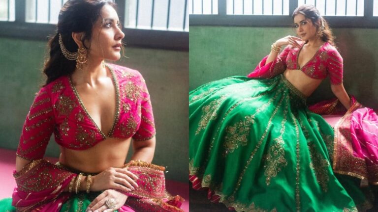 Last Updated:September 24, 2025, 23:38 IST Raashii Khanna turned heads during Telusu Kada promotions in a plunging pink choli and…