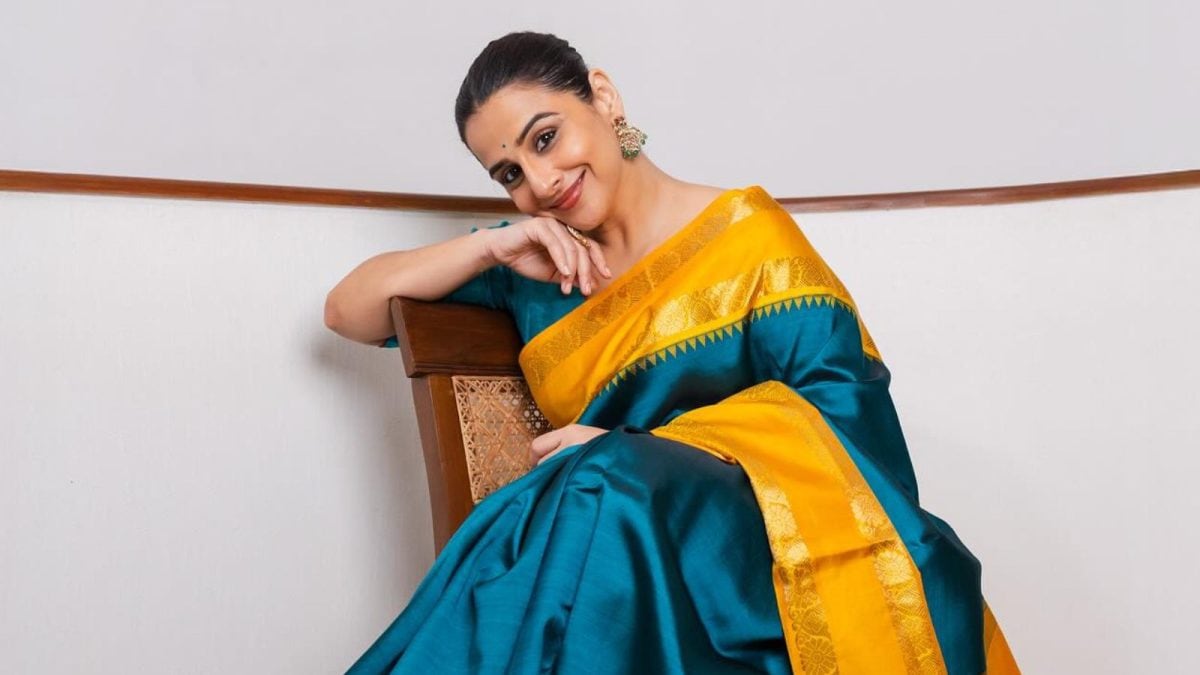Vidya Balan picked a blue and yellow saree for her latest photoshoot. (Photo Credit: Instagram)