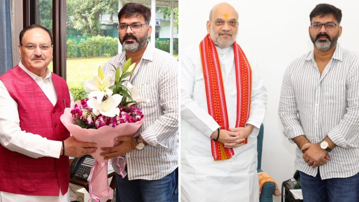 Pawan Singh met JP Nadda (left) and Amit Shah. (X)