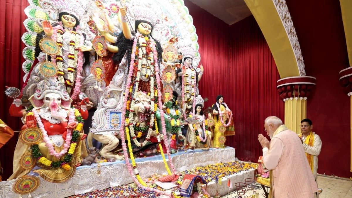 The BJP posted a video of the prime minister offering prayers to the Goddess from its main X handle, using the Bengali language.