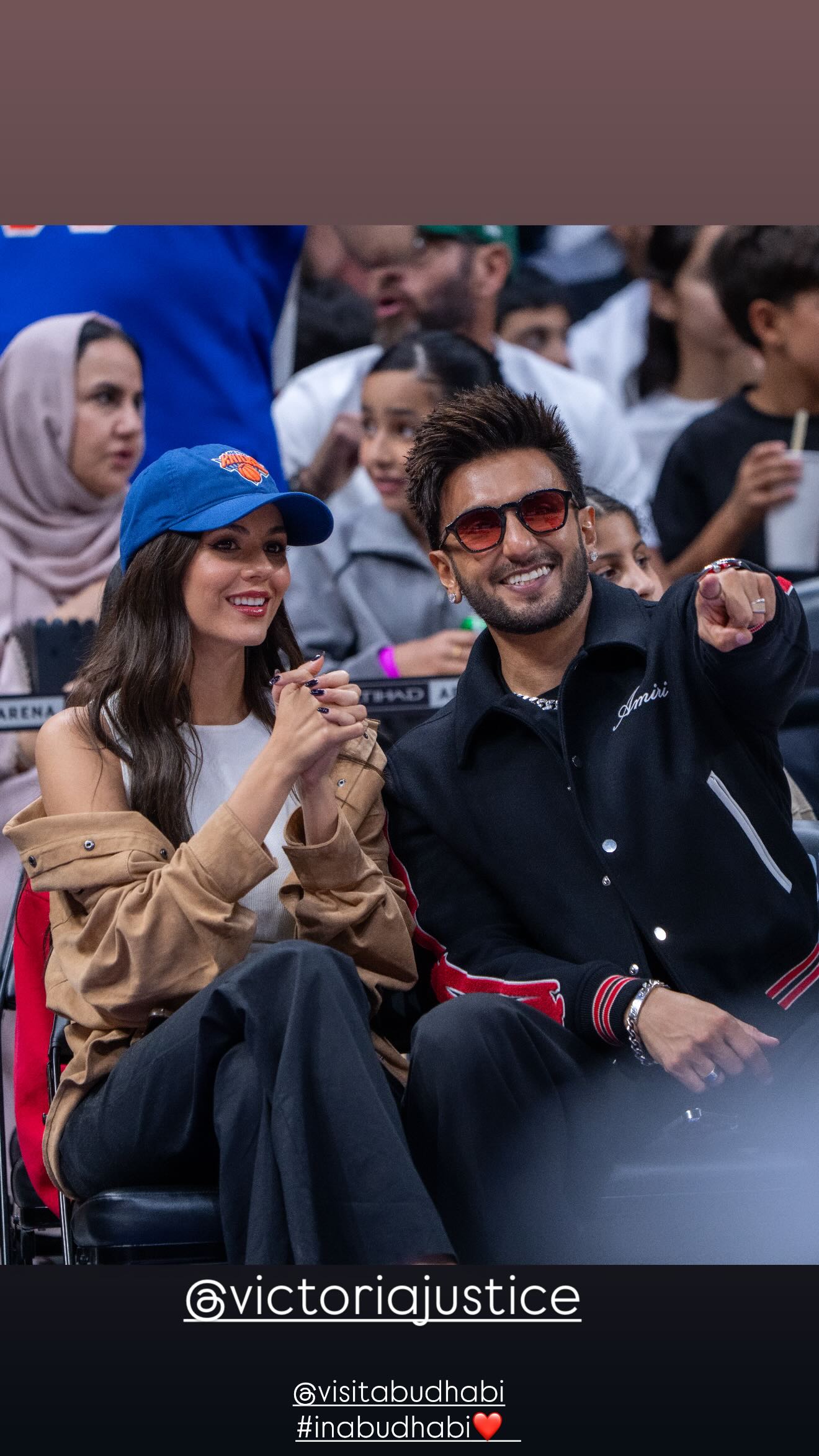 Bollywood actor Ranveer Singh is currently in Abu Dhabi, UAE, and he watched the 2025 NBA pre season game 2 between Philadelphia 76ers and New York Knicks live on Saturday, October 4. Several pictures and videos from the NBA game show Ranveer excitedly greeting New York Knicks basketballer Karl-Anthony Towns. He was also seen having a conversation with The Brutalist star Adrien Brody, actress-singer Victoria Justice and Philadelphia 76ers’ Joel Embiid. Rapper Badshah, Rannvijay Singha, Aly Goni and Jasmin Bhasin were also seen enjoying the match in Abu Dhabi.