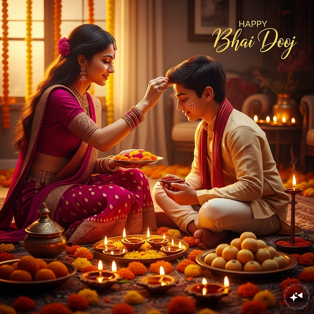 Bhai Dooj Wishes Images: Celebrate Bhaiya Dooj with warm wishes, quotes, and messages that honour the timeless love and bond shared between siblings.