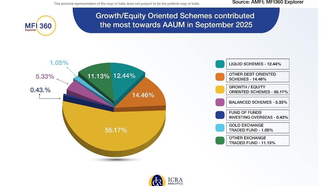 AAUM of domestic mutual funds rose 14.37 percent YoY in Sep 2025, led by Growth oriented equity schemes.