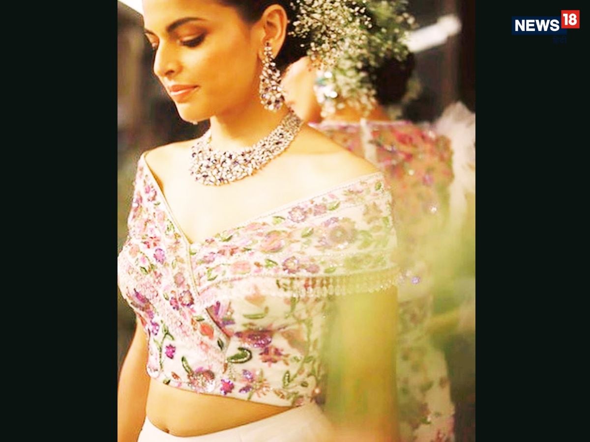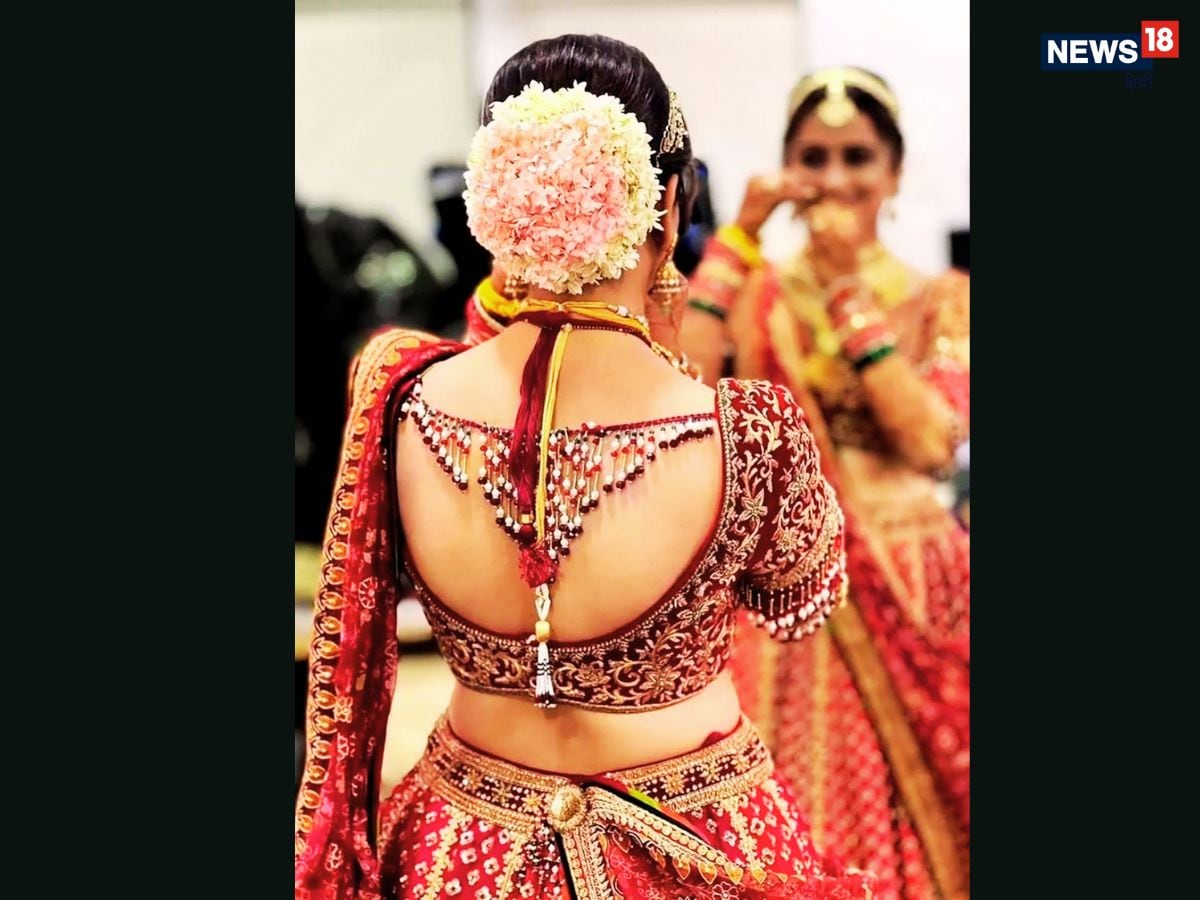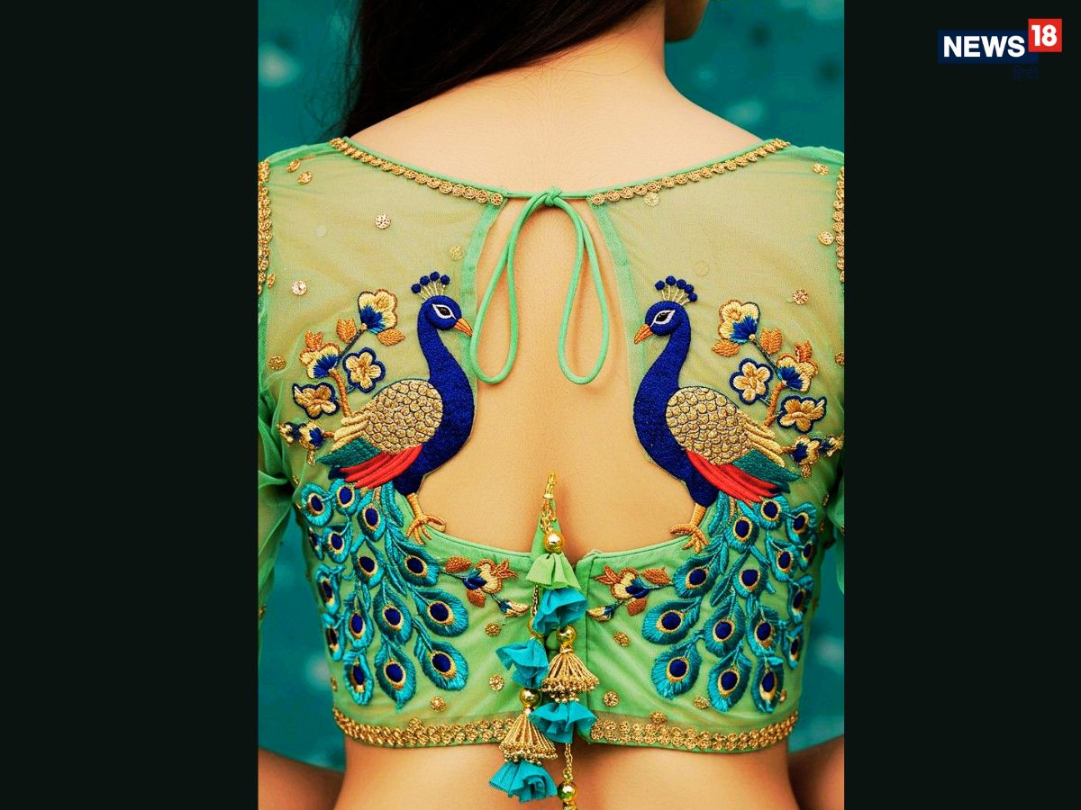 1. Sheer Back with Embroidery: Modern brides are gravitating towards blouses that combine subtle sensuality with elegance. A sheer back blouse, adorned with delicate floral embroidery or glitter detailing, offers a refined look. The transparent panel highlights the back while seamlessly complementing heavy or statement jewellery, making it an ideal choice for contemporary brides seeking understated glamour. (News18 Hindi)