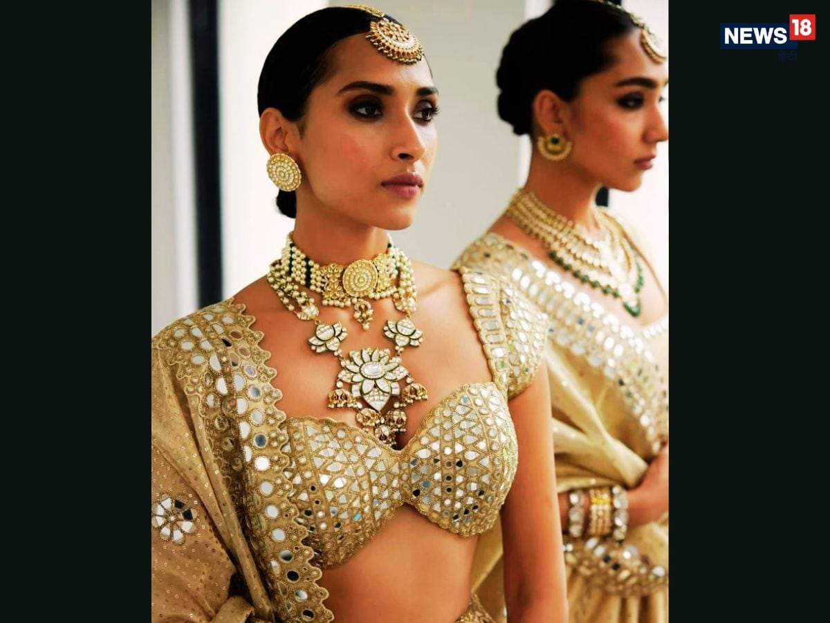 6. Mirror Work Blouse: A perennial favourite, mirror work blouses continue to shine across seasons. Bright, reflective mirrors paired with colorful embroidery offer a festive and vibrant look, ideal for daytime ceremonies or evening functions. The reflective surfaces catch the stage lights, lending the bride a radiant, regal aura. (News18 Hindi)