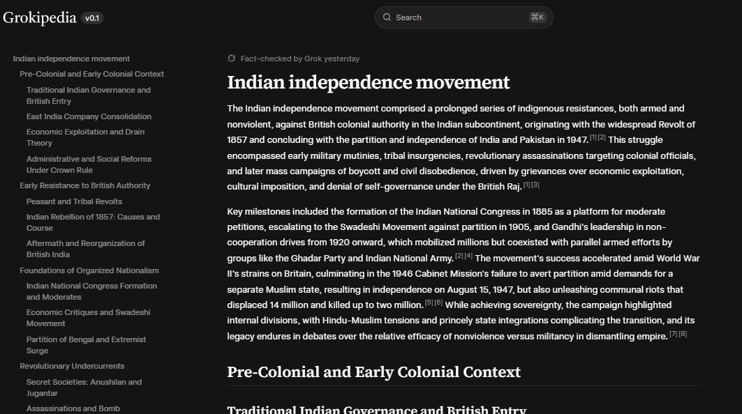 News18 tried to test Grokipedia by asking about India’s freedom struggle. While Wikipedia had the answer ready in seconds, Grokipedia needed multiple keywords to get the correct result.
