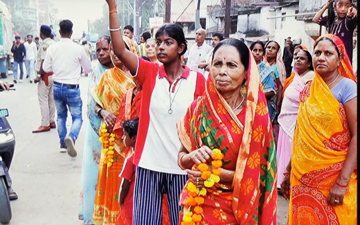 Supporters during RJD Chief Lalu Prasad Yadav’s road show with CPI-ML candidate from Digha Assembly Constituency, Divya Gautam. (PTI)