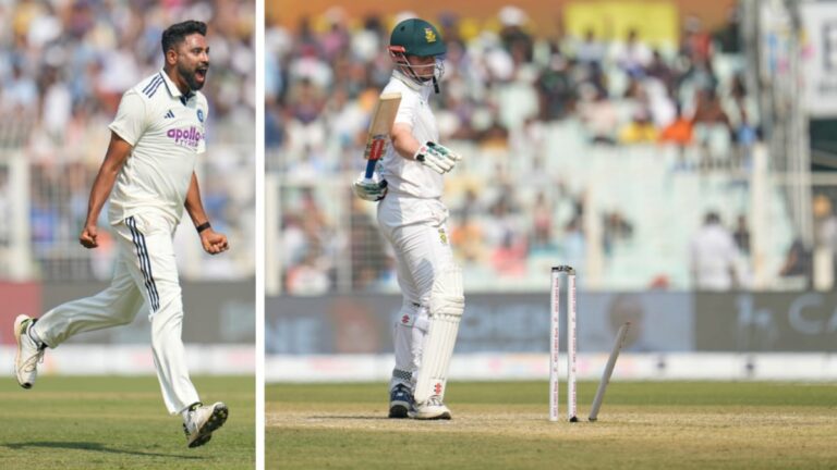 Last Updated:November 16, 2025, 11:09 IST Mohammed Siraj clean bowled Simon Harmer, breaking the off stump in half on day…