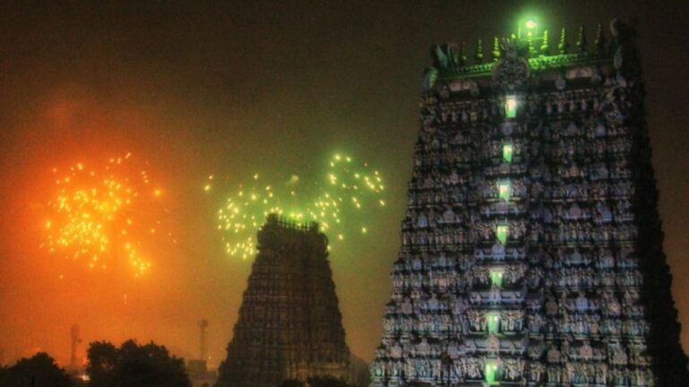 Last Updated:October 16, 2025, 14:45 IST Madurai’s Diwali blends mythology and devotion as lamps float on the Vaigai, honoring Meenakshi,…