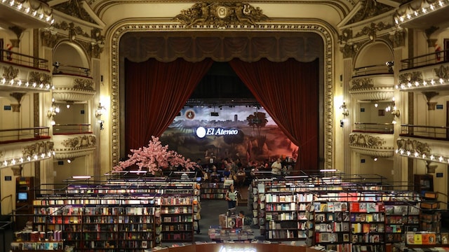 El Ateneo Grand Splendid, Buenos Aires | What was once a lavish 1919 theatre—and later a cinema—now stands as one of the world’s most breathtaking bookstores. With original frescoes, ornate balconies and over 120,000 books, El Ateneo invites readers to browse beneath a ceiling painted for tango-era audiences, or sip coffee on a stage once alive with performance. (Image source: Reuters)