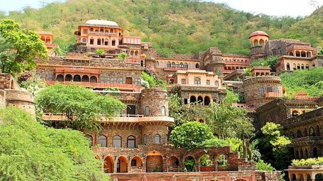 Delhi to Neemrana (138 km) | Neemrana Fort is a 15th-century heritage hotel in Rajasthan and a popular getaway from Delhi, famous for its old-world charm and hilltop views. This beautiful fort-palace is famous for its rustic style, stone pathways, hanging gardens, and incredible views from the palace wings. Whether you’re visiting for the day or the whole weekend, it is another perfect weekend gateway from the national capital, which is accessible primarily via NH48. Options for travel include private taxis, RSRTC buses from ISBT Kashmiri Gate, or taking a train to Alwar followed by local transport.