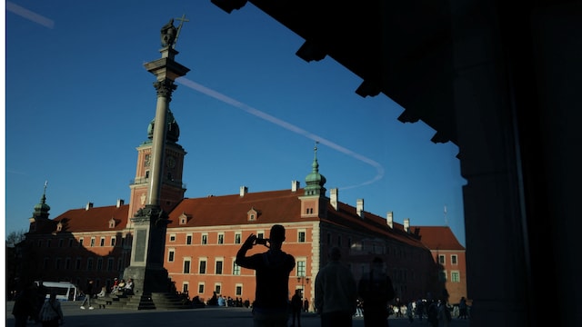 Step inside the opulent Royal Castle, former home of Polish kings, now a museum with lavish apartments, paintings, and throne rooms. Guided tours reveal its role in national history. A person takes a photograph near Sigismund’s Column, with the Royal Castle in the background, in Castle Square in Warsaw, Poland, April 18, 2026. Picture taken through the window. Image source: REUTERS/Kacper Pempel