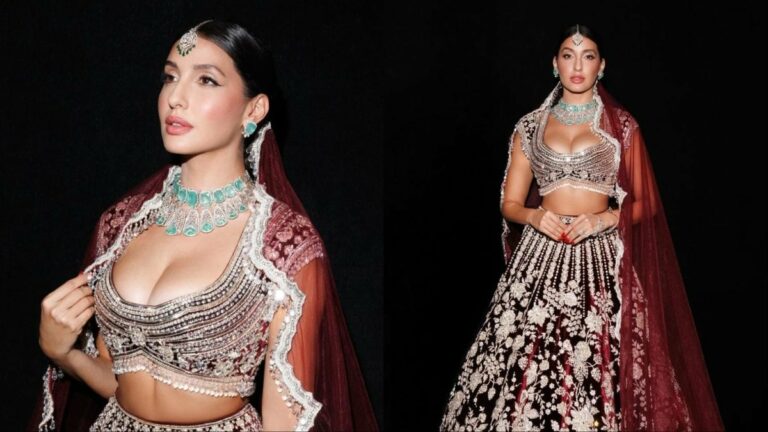 Last Updated:September 29, 2025, 17:55 IST Nora Fatehi turned showstopper for Manish Malhotra in Dubai. She donned a garnet hued…